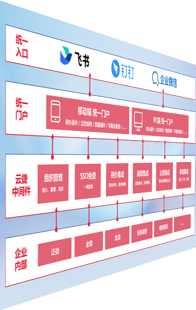 对协作平台提供支持服务,,,,支持企业应用与协作平台对接,,,包含组织同步、、、、消息集成、、、待办集成等。。。支持目前主流的协作平台:钉钉、、、企微和飞书。。